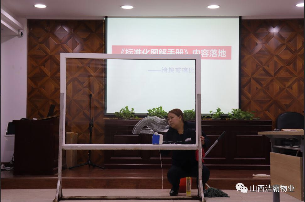為提高公司管理人員基礎(chǔ)技能,潔霸公司利用周四內(nèi)部員工培訓(xùn)的時(shí)間組織了一次系統(tǒng)的內(nèi)部管理人員檫玻璃培訓(xùn),隨后并進(jìn)行了以組為單位的檫玻璃競(jìng)賽。
