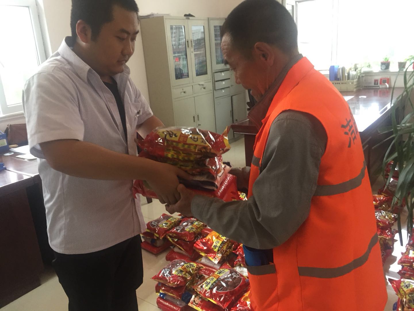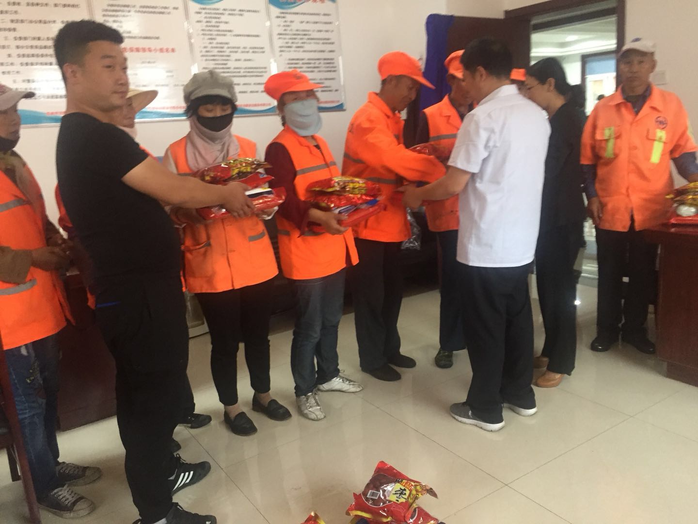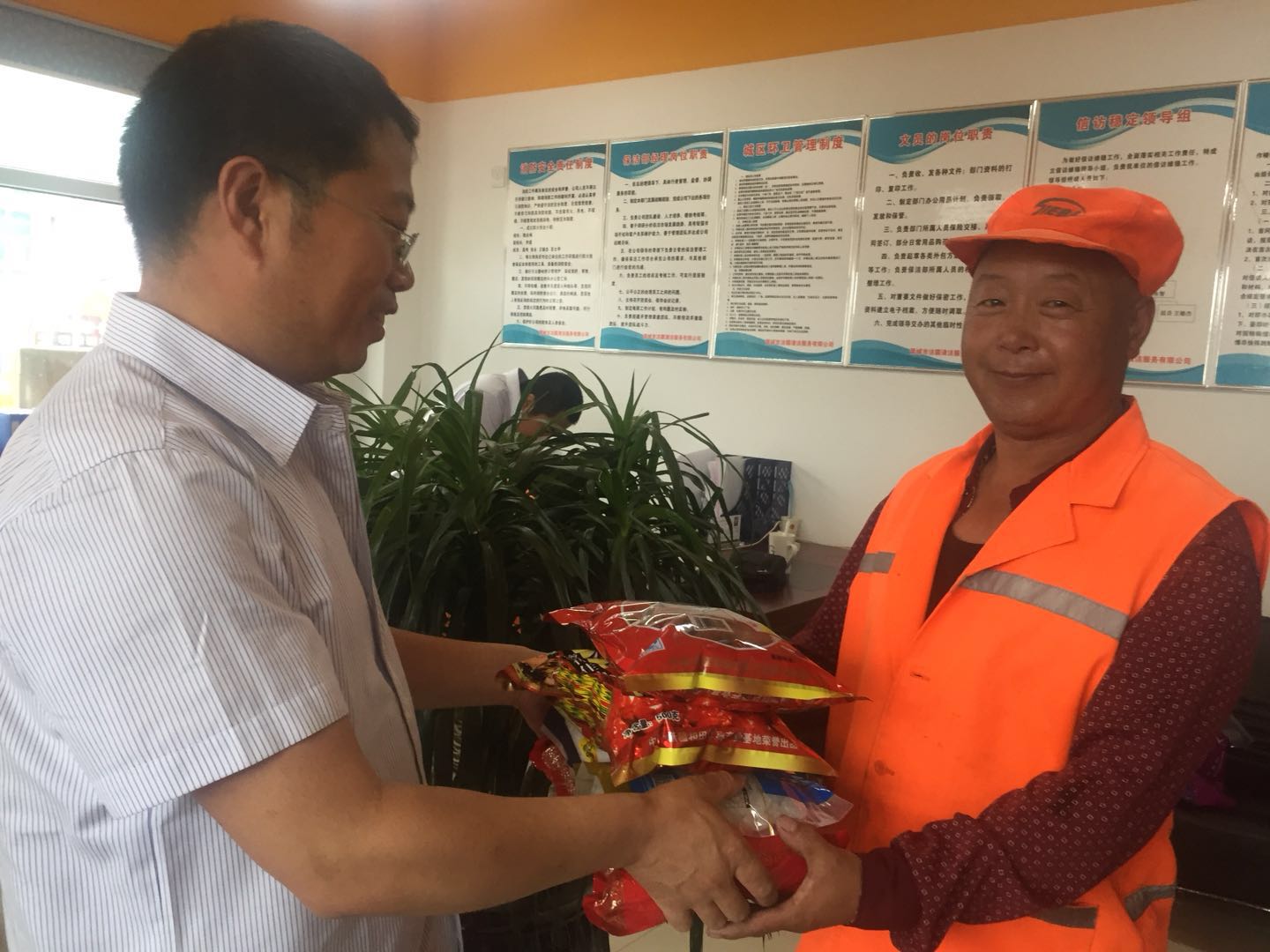 端午節(jié)來臨之際,為弘揚(yáng)傳統(tǒng)文化,我公司按照傳統(tǒng)習(xí)俗為環(huán)衛(wèi)工準(zhǔn)備了節(jié)日禮品。濃濃棕香,綿綿情長(zhǎng)。6月5日下午,在一年一度的端午佳節(jié)來臨之際,一袋袋香香的糯米、大大的紅棗、白糖、冰糖飽含著公司關(guān)愛和祝福的端陽節(jié)福利由公司領(lǐng)導(dǎo)親自發(fā)放到為美化城區(qū)大街小巷作出默默奉獻(xiàn)的公司環(huán)衛(wèi)工人手中。