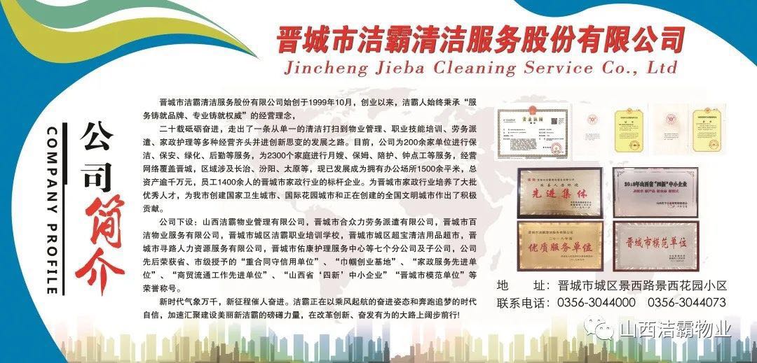 20年砥礪奮進(jìn),從一個(gè)租賃兩間辦公室名不見經(jīng)傳的小公司,成長為擁有擁有辦公場所1500余平米,總資產(chǎn)逾千萬元,員工1500余人的晉城市家政行業(yè)的標(biāo)桿企業(yè),潔霸完成了精彩跨越,“做清潔行業(yè)的霸主”的發(fā)展定位從未改變。