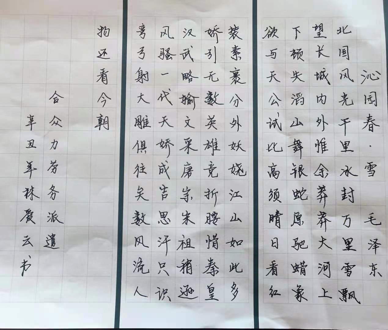 本次硬筆書(shū)法比賽活動(dòng)圍繞“喜迎建黨百年華誕”主題,以摘抄歌頌黨、歌頌祖國(guó)、歌頌企業(yè)的詩(shī)詞、散文、歌賦等為書(shū)寫(xiě)內(nèi)容,參賽選手個(gè)個(gè)滿(mǎn)懷激情,用心書(shū)寫(xiě)每一個(gè)漢字,筆畫(huà)流暢,結(jié)構(gòu)勻稱(chēng),整體美觀,表現(xiàn)出良好的書(shū)寫(xiě)功底。公司組織相關(guān)人員對(duì)參賽員工的作品進(jìn)行客觀公正的評(píng)審,評(píng)選出一、二、三等獎(jiǎng)若干名。