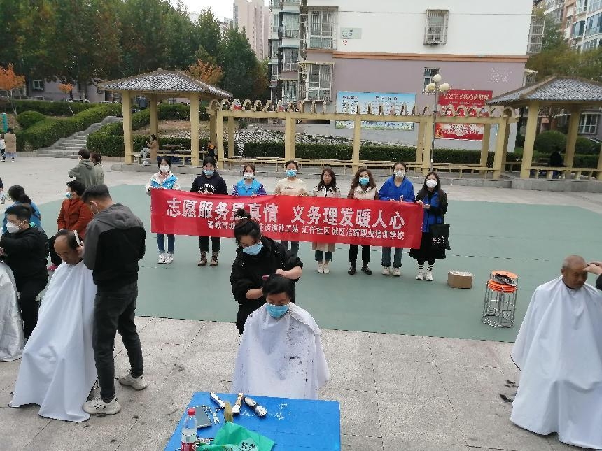 為了更好地服務居民,提升轄區(qū)內居民的幸福感,2022年10月20日,潔霸職業(yè)培訓學校聯(lián)合城區(qū)鐘家莊街道社工站、匯仟小區(qū)在匯仟B區(qū)開展“志愿服務是真情,義務理發(fā)暖人心”公益活動。