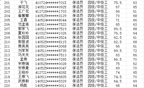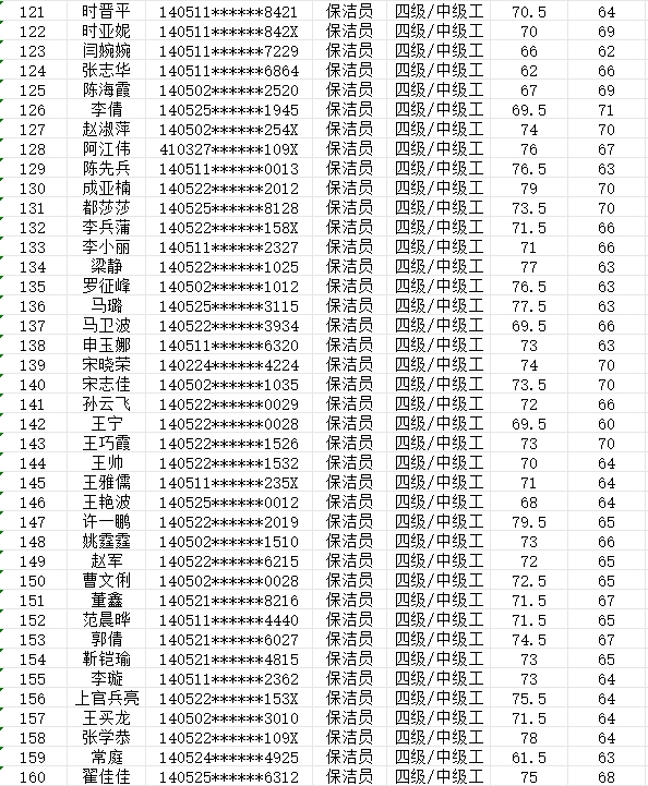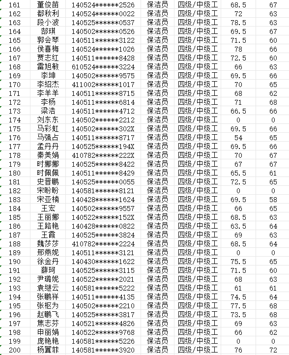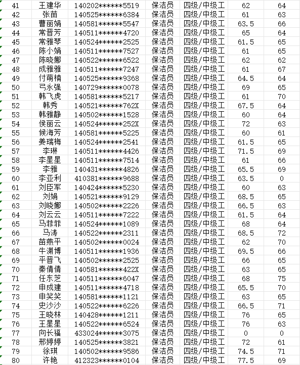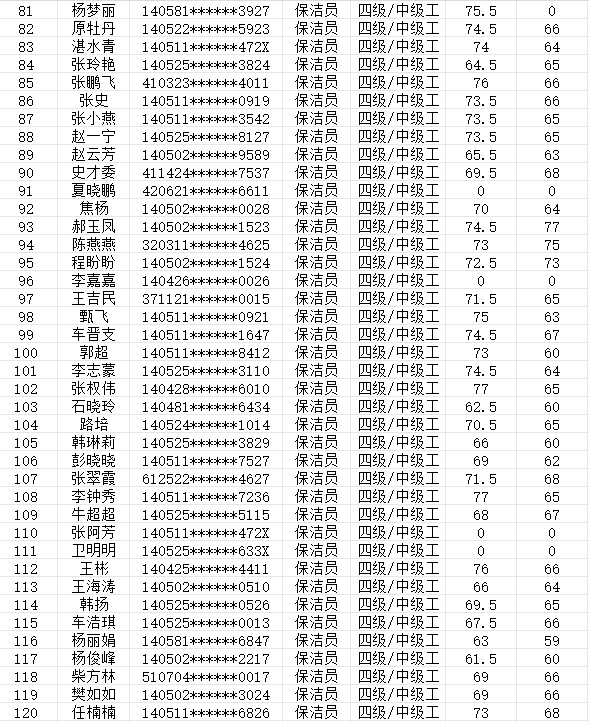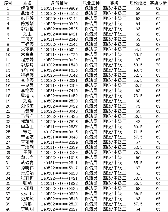晉城市潔霸清潔服務(wù)股份有限公司職業(yè)技能等級認定中心現(xiàn)將2024年2月25日認定人員成績公示如下: