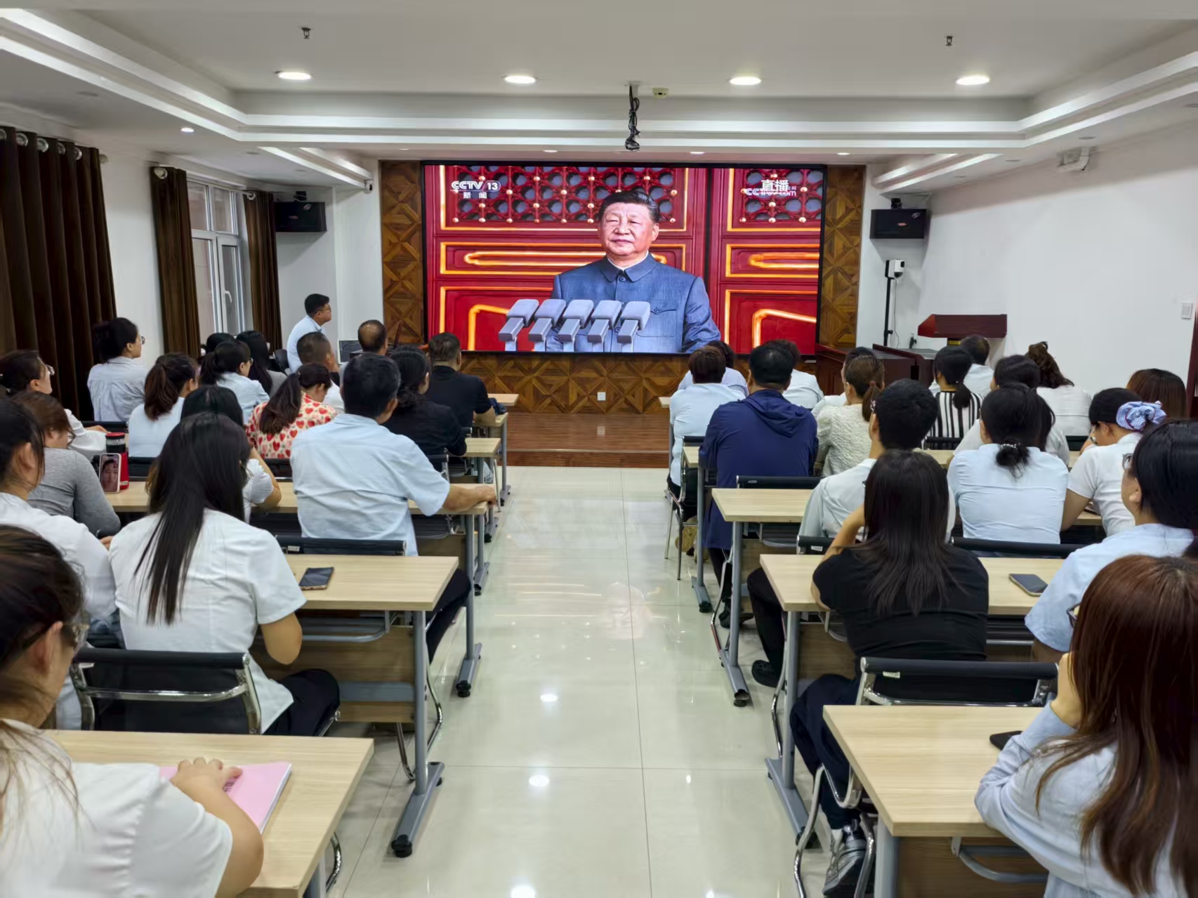 秋日的北京,長風(fēng)浩蕩,花團(tuán)錦簇,旌旗飄揚(yáng)。上午9時(shí),隨著聯(lián)合軍樂團(tuán)奏響雄壯的《義勇軍進(jìn)行曲》,全場齊聲高唱中華人民共和國國歌,鮮艷奪目的五星紅旗冉冉升起,在天安門廣場上空高高飄揚(yáng)。習(xí)近平總書記在大會(huì)上發(fā)表重要講話。 9時(shí)15分,閱兵儀式開始。受閱部隊(duì)軍容嚴(yán)整、意氣風(fēng)發(fā),鐵甲戰(zhàn)車整齊列陣、威風(fēng)凜凜,接受習(xí)近平總書記的檢閱。 9時(shí)44分,空中護(hù)旗梯隊(duì)率先亮相,揭開閱兵分列式的序幕。 雄師列陣,氣勢如虹。陸軍方隊(duì)、海軍方隊(duì)、空軍方隊(duì)、火箭軍方隊(duì)威武雄壯,步履鏗鏘;軍事航天部隊(duì)方隊(duì)、網(wǎng)絡(luò)空間部隊(duì)方隊(duì)、信息支援部隊(duì)方隊(duì)、聯(lián)勤保障部隊(duì)方隊(duì)精神抖擻,整齊劃一;武警部隊(duì)方隊(duì)雄姿勃發(fā),氣勢昂揚(yáng)……徒步方隊(duì),英姿颯爽,展現(xiàn)軍人亮麗風(fēng)采。 戰(zhàn)旗獵獵,鐵流滾滾。戰(zhàn)旗方隊(duì)、裝備方隊(duì)一一通過天安門城樓,接受檢閱。新型坦克、無人智能、網(wǎng)電作戰(zhàn)、高超聲速、防空反導(dǎo)、戰(zhàn)略導(dǎo)彈……亮相閱兵場。國之重器,壓艙基石,彰顯國家國防實(shí)力。 戰(zhàn)鷹呼嘯,振翅長空。預(yù)警指揮機(jī)、特種機(jī)、運(yùn)輸機(jī)、轟炸機(jī)、加受油機(jī)、殲擊機(jī)、艦載機(jī)等空中梯隊(duì)依次低空飛過天安門廣場。7架殲-10拉出14道彩煙,寓意著中華民族14年可歌可泣的抗戰(zhàn)歷程,展示翱翔天際的“硬核浪漫”。 觀看過程中,現(xiàn)場氣氛熱烈,振奮人心,公司干部職工難掩激動(dòng),全體人員接受了一次深刻的愛國主義教育。大家被習(xí)近平總書記的講話深深感染,被人民解放軍的軍容軍貌和軍事裝備的實(shí)力展示深深震撼,看到祖國的強(qiáng)大,每個(gè)人心中都涌起一種強(qiáng)烈的自豪感,激蕩起澎湃的愛國情懷。 大家表示,新時(shí)代新征程,將始終堅(jiān)持以習(xí)近平新時(shí)代中國特色社會(huì)主義思想為指引,深入學(xué)習(xí)貫徹習(xí)近平總書記在大會(huì)上的重要講話精神,深刻領(lǐng)會(huì)中國人民抗日戰(zhàn)爭勝利的偉大歷史意義,傳承和弘揚(yáng)偉大抗戰(zhàn)精神、愛國主義精神,銘記歷史、緬懷先烈、珍愛和平、開創(chuàng)未來。要加強(qiáng)學(xué)習(xí)提升自身素質(zhì),立足崗位做好各項(xiàng)工作,敬業(yè)奉獻(xiàn)抓好服務(wù)管理,實(shí)干擔(dān)當(dāng)推動(dòng)企業(yè)發(fā)展,為集團(tuán)高質(zhì)量發(fā)展貢獻(xiàn)自己的力量。 |