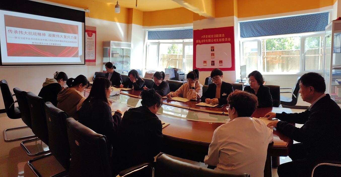 為紀(jì)念中國(guó)人民抗日戰(zhàn)爭(zhēng)暨世界反法西斯戰(zhàn)爭(zhēng)勝利80周年,弘揚(yáng)偉大抗戰(zhàn)精神,9月20日,集團(tuán)黨支部組織開展學(xué)習(xí)習(xí)近平總書記在紀(jì)念中國(guó)人民抗日戰(zhàn)爭(zhēng)暨世界反法西斯戰(zhàn)爭(zhēng)勝利80周年大會(huì)上的重要講話專題黨課活動(dòng)。支部書記程晉軍主講,支部黨員和入黨積極分子17人參加本次學(xué)習(xí)活動(dòng)。